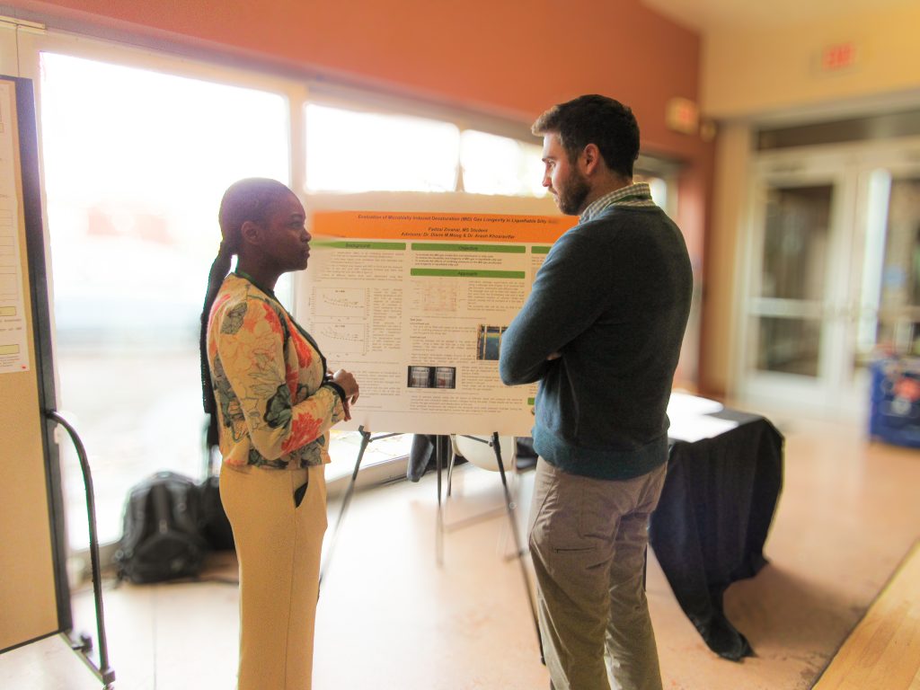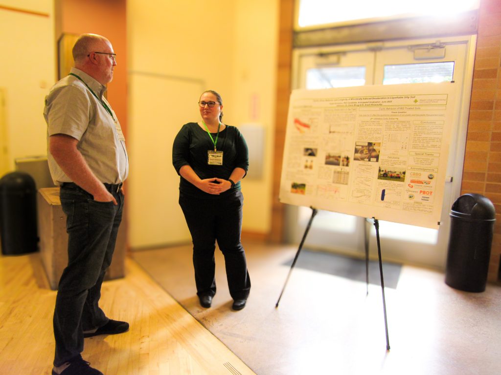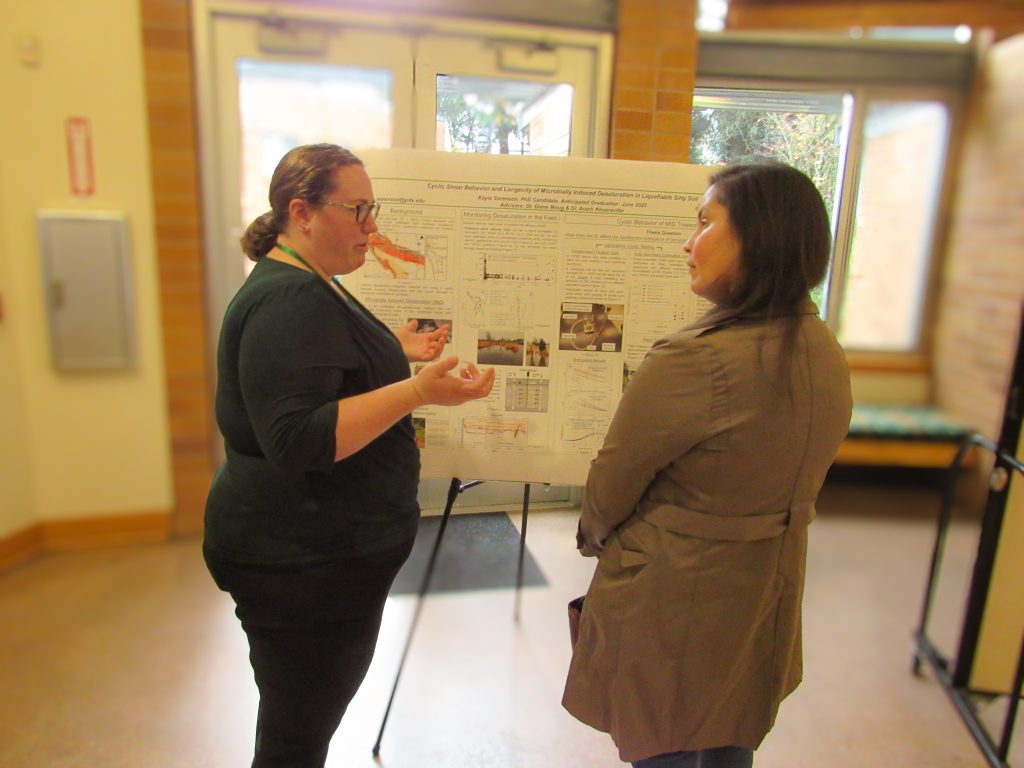 Geotechnical graduate students hosted a symposium showcasing their research to over 30 industry professionals, representing both public and private interests. Poster and presentation titles are listed below.